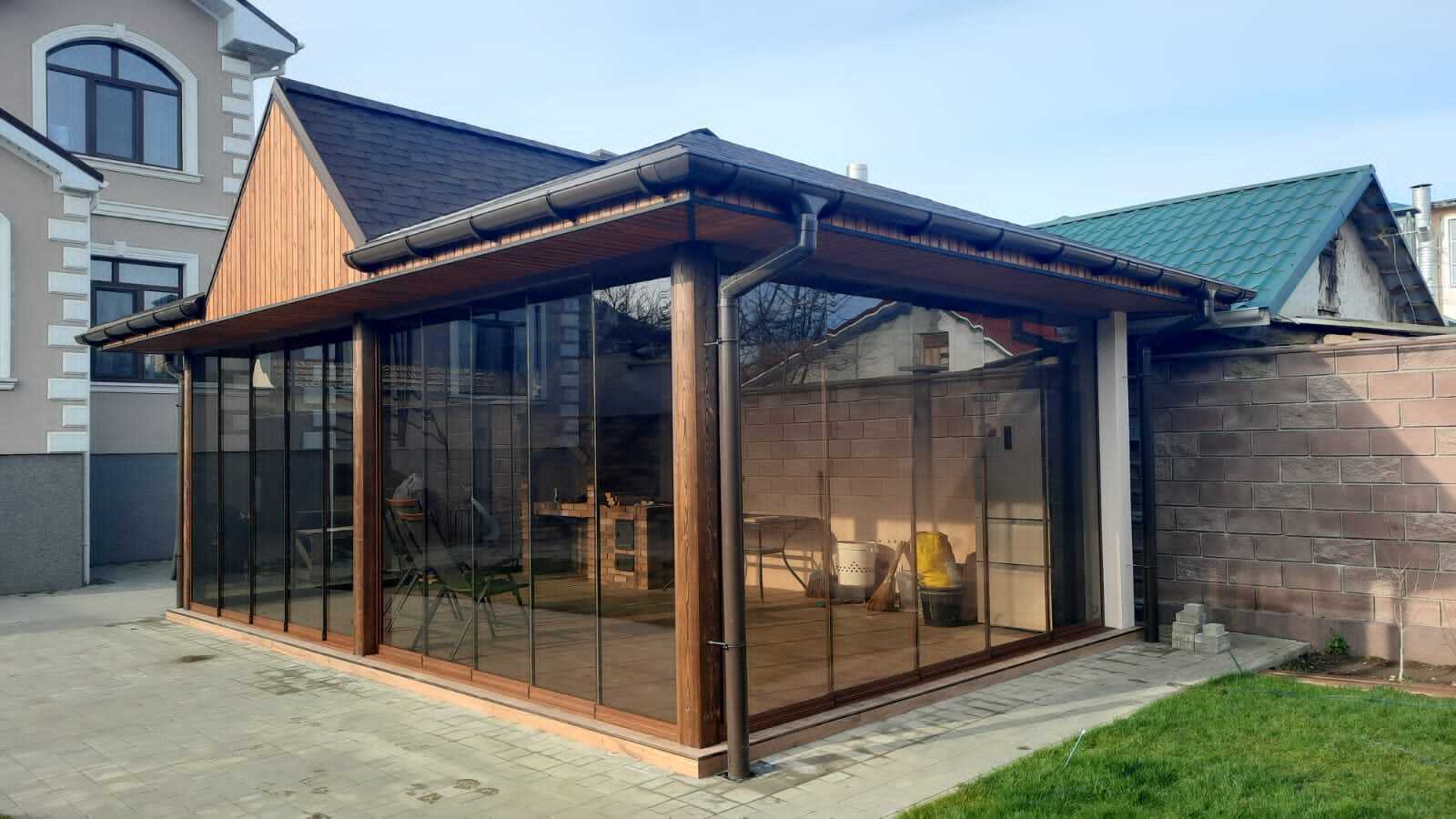 Зона барбекю под стеклом: безрамное остекление для открытых площадок